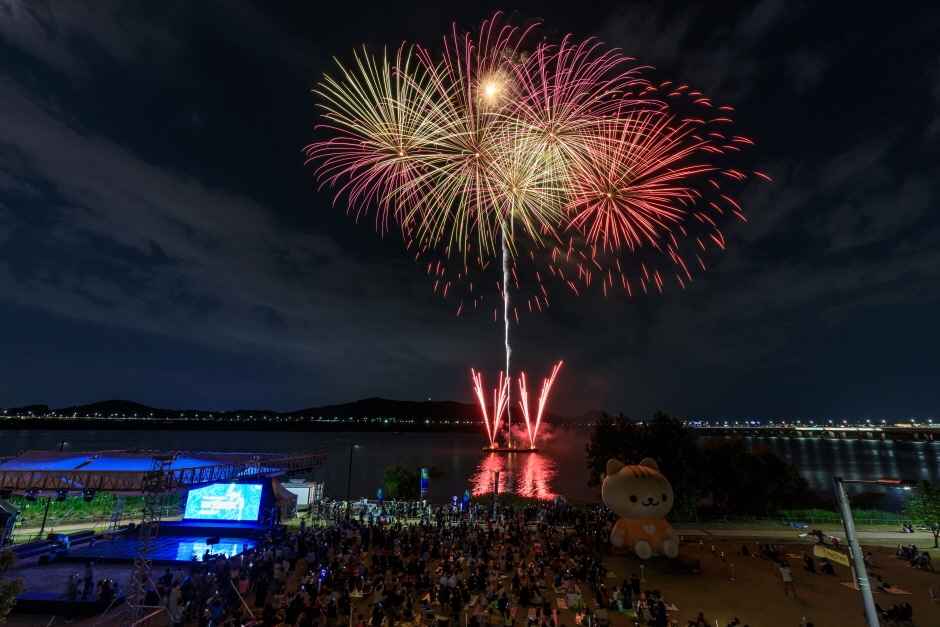 - 수상불꽃놀이: 드론쇼와 이어지는 한강 위 불꽃쇼, 한여름 밤의 하이라이트