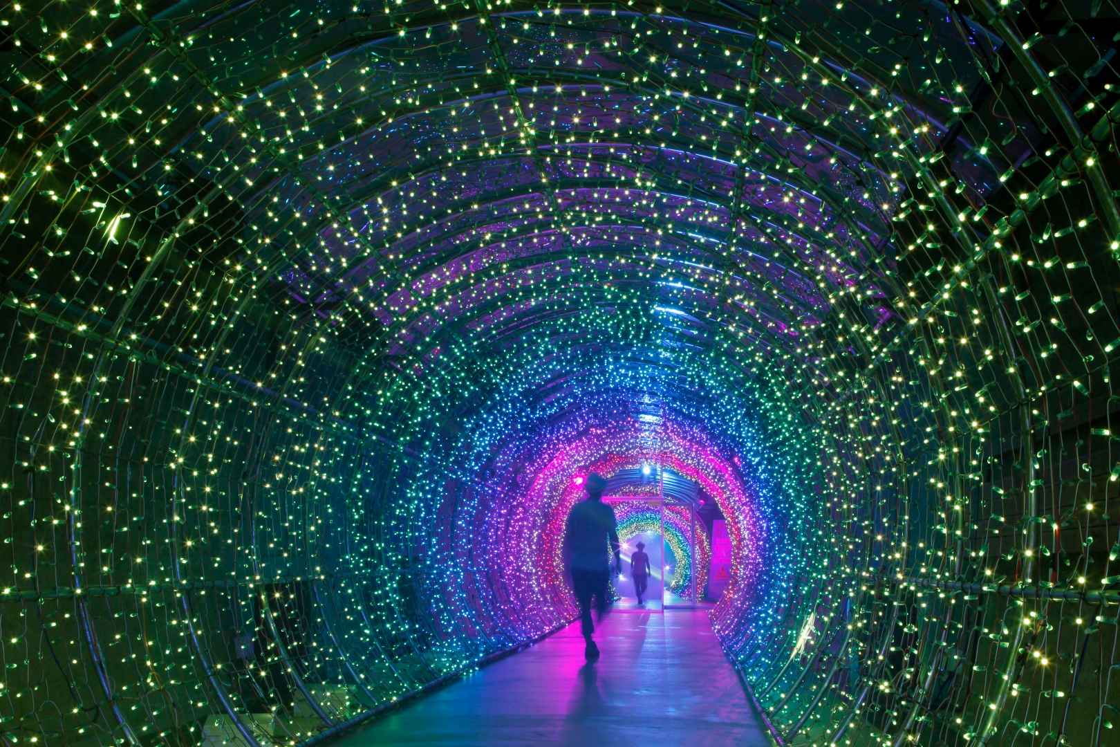 200m 길이의 이 터널은 단순한 빛의 나열이 아니라, 여섯 개 구간의 테마 공간으로 구성되어 환상적인 체험을 선사해요.