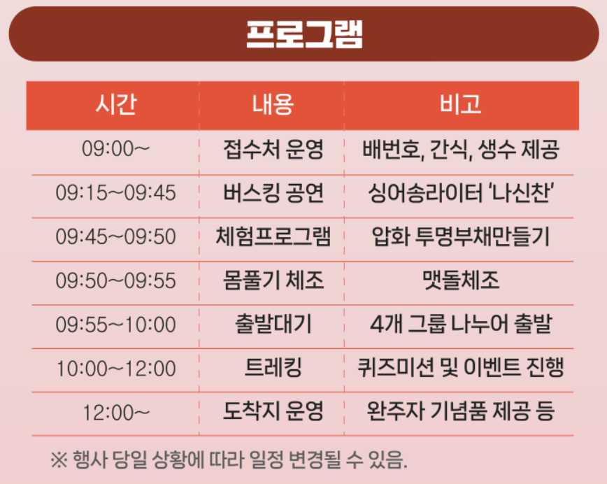 - 참가 정원: 회차별 최대 600명, 멍멍트레킹 200명(반려견 50마리 제한)