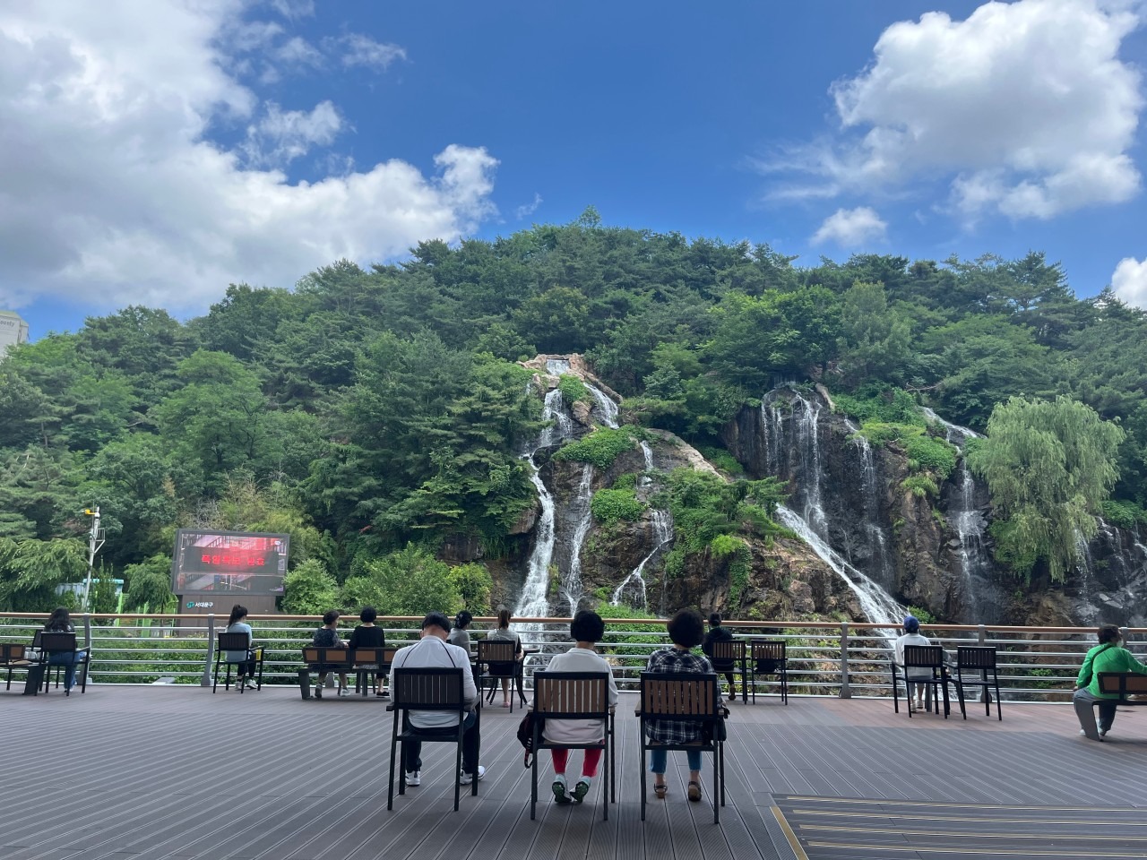 실제 폭포 같은 인공폭포, 시원한 여름 뷰 완성