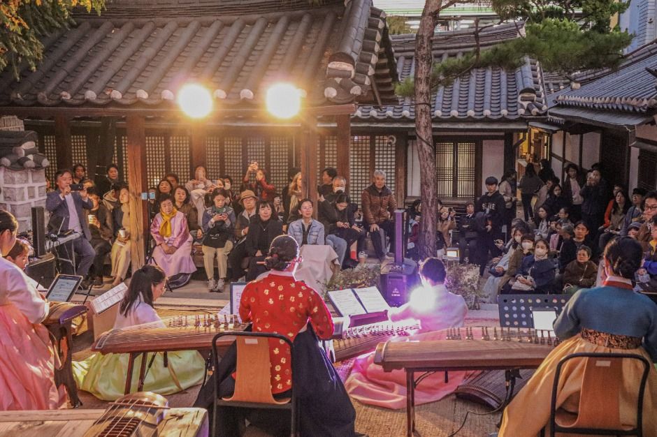 공연은 일부 한옥에서는 마당에서 펼쳐지고, 일부는 작은 실내 공간에서 진행돼요. 조용히 앉아 전통과 현대가 어우러진 퍼포먼스를 감상할 수 있어요.