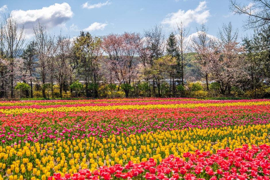 수목원 중심부를 화사하게 수놓은 수만 송이의 튤립들이 색색깔로 피어나는 정원입니다. 빨강, 노랑, 보라, 분홍 튤립이 조화를 이루며 장관을 이루고, 다양한 포토존도 함께 마련되어 있어 사진 촬영을 즐기기에 좋습니다.