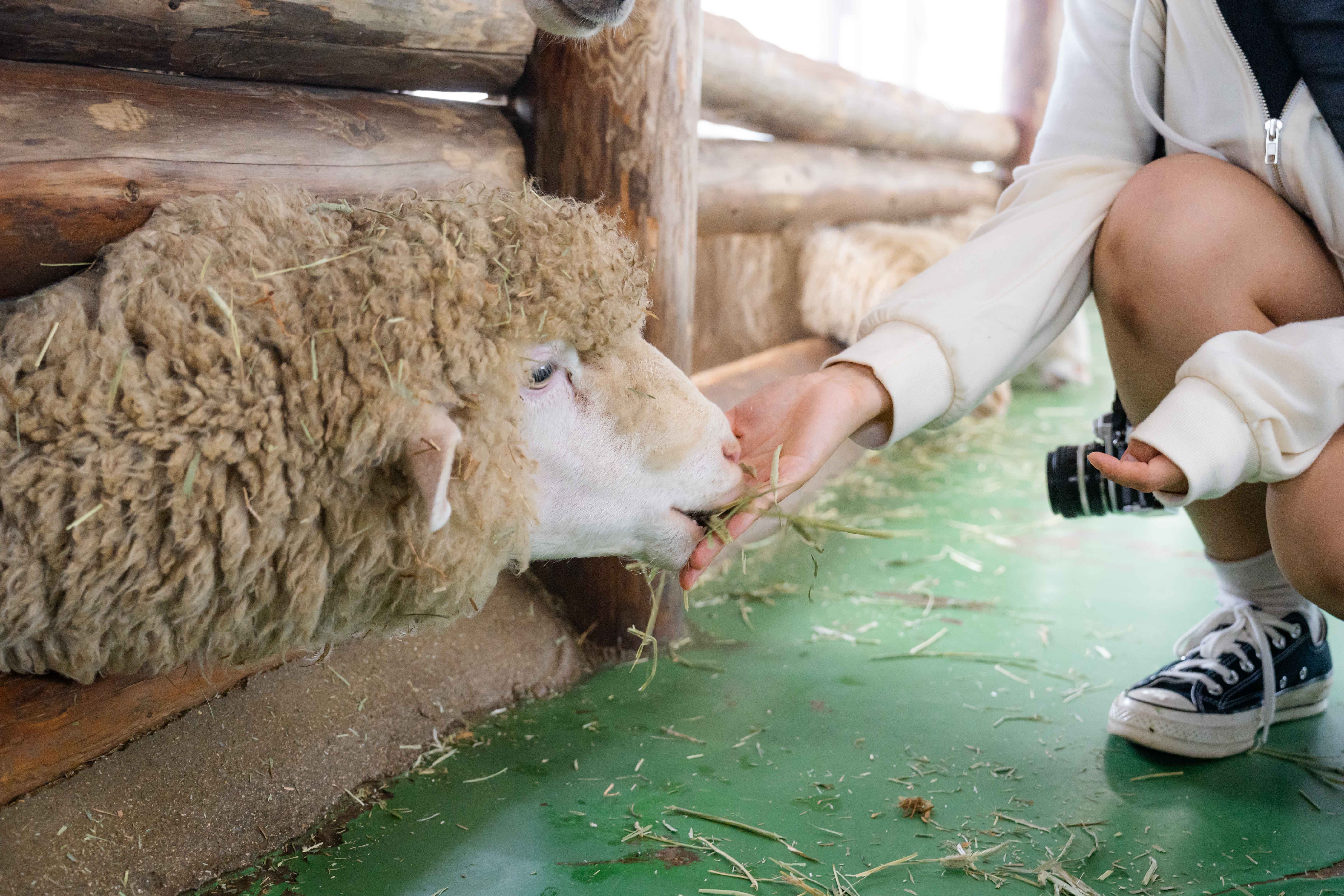 산책 마지막 코스에서는 축사 내 양들에게 건초를 직접 줄 수 있는 먹이 주기 체험이 기다리고 있습니다.