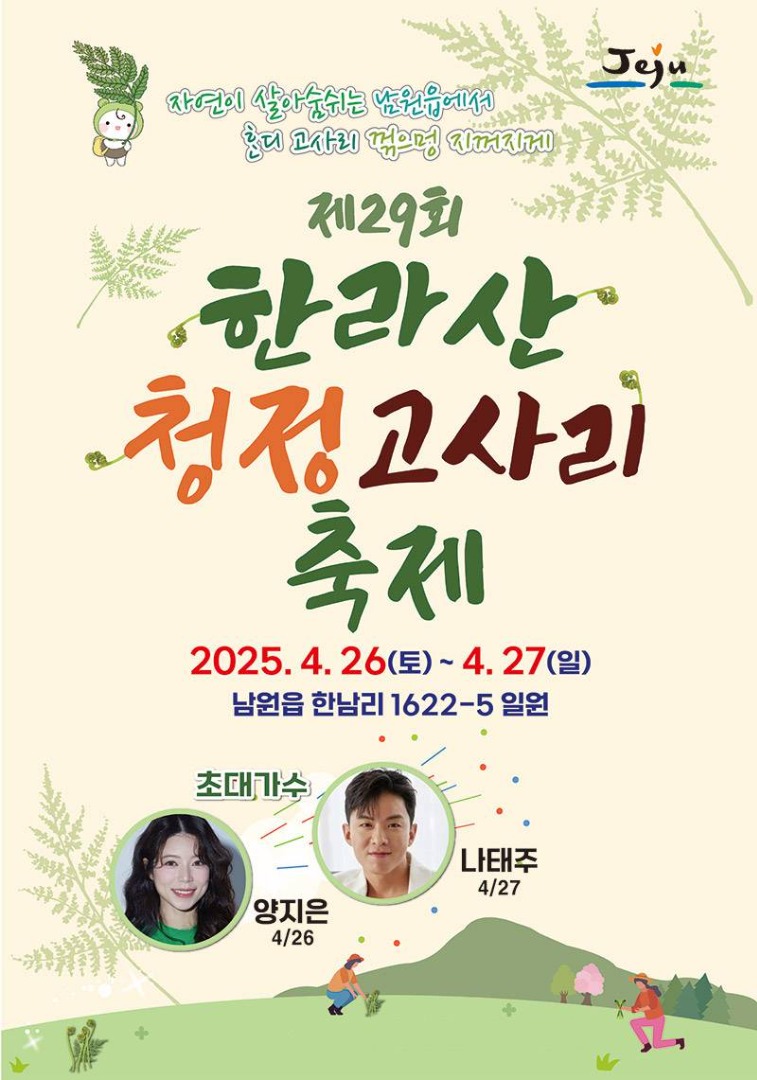 제주의 봄은 고사리로 시작됩니다. 한라산 자락의 청정 자연에서 자생하는 고사리를 테마로 한 '한라산 청정 고사리축제'는 매년 봄, 서귀포시 남원읍에서 개최되어 지역 주민과 관광객이 함께 어우러지는 참여형 행사로 자리매김하고 있습니다. 2025년 4월 26일부터 27일까지 이틀간 열리는 제29회 축제는 다양한 체험 프로그램과 공연, 먹거리로 가득한 제주 대표 봄 축제로 기대를 모으고 있습니다.