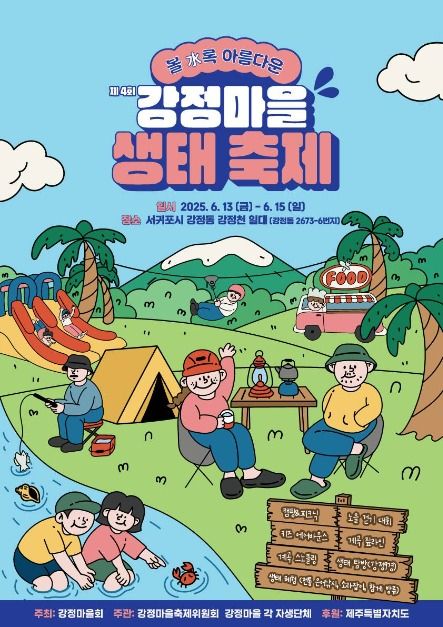 축제는 2025년 6월 13일(금)부터 6월 15일(일)까지 3일간, 제주 서귀포시 강정천 일대에서 열립니다.