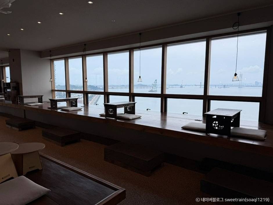 차덕분에 들어서면 먼저 눈에 들어오는 건 넓은 통창 너머로 펼쳐진 바다 풍경입니다.