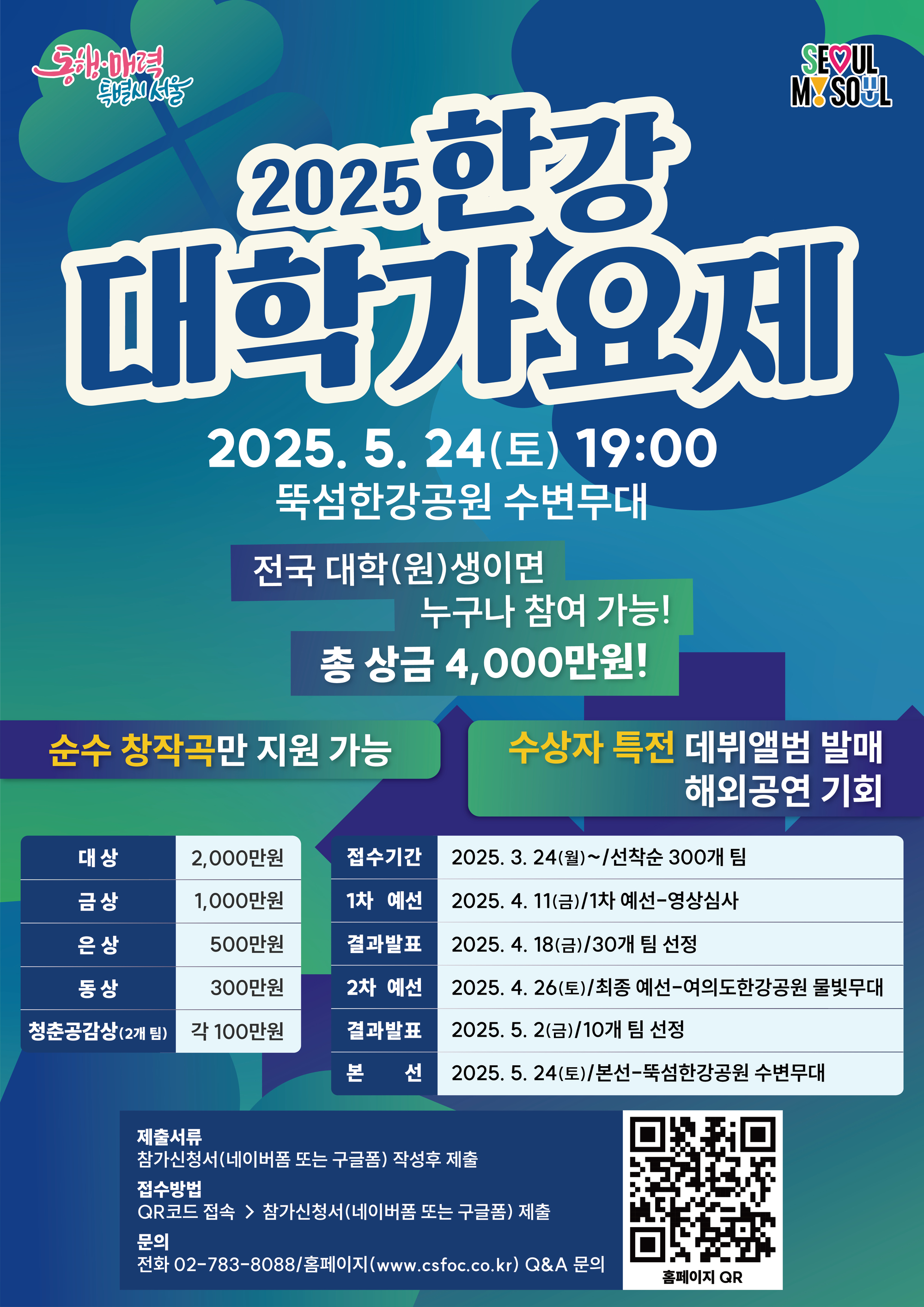 다가오는 해에도 또 어떤 새로운 목소리들이 한강 위 무대를 채울지 기대하며, 한강 대학가요제를 사랑하는 모든 청춘들에게 박수를 보냅니다.