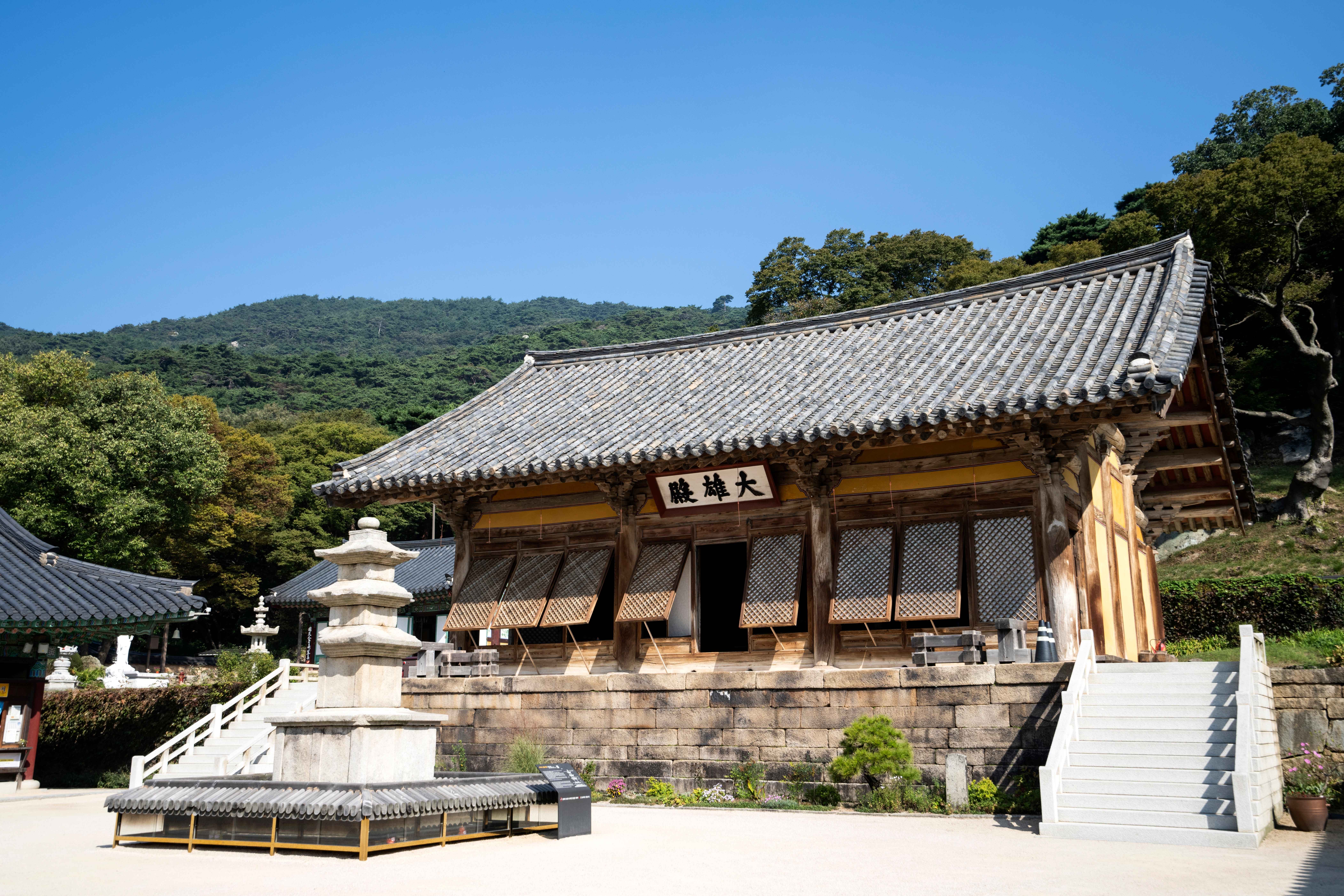 고려시대의 숨결이 고스란히 남아 있는 **대웅전(국보 제49호)**은 한국 목조건축의 진수를 보여주며, 걷는 내내 마음이 정화되는 기분을 줍니다.