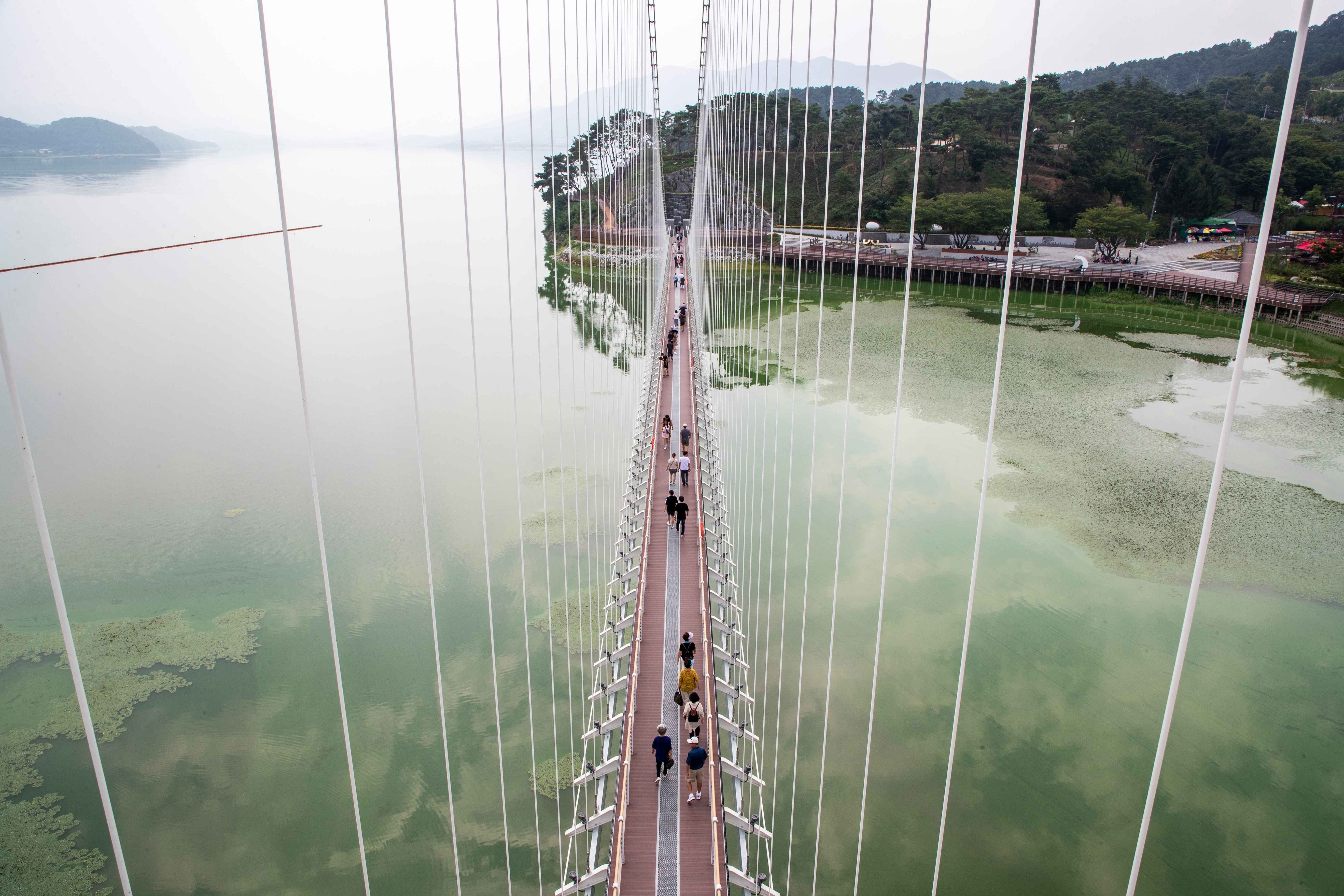 한 발 한 발 디딜 때마다 살짝 흔들리는 스릴과 함께, 넓은 호수 위로 펼쳐지는 풍경은 감탄을 자아냅니다.