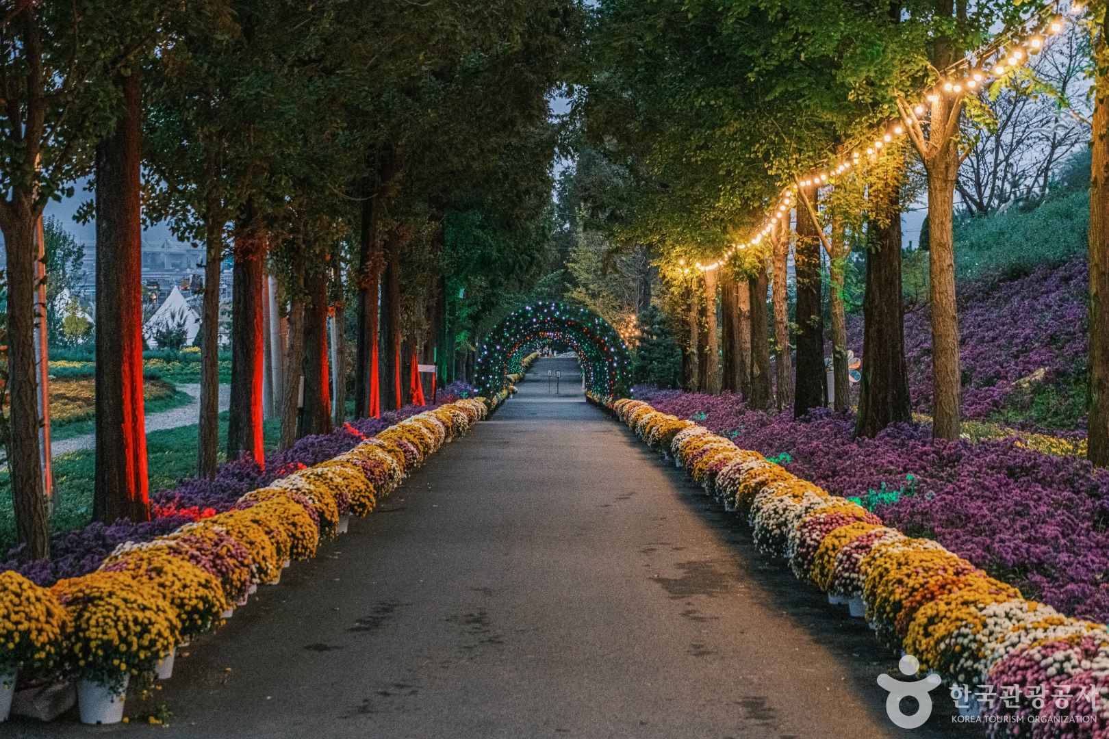 밤이 되면 꽃 정원은 또 다른 모습으로 변해요. 조명과 함께 어우러진 꽃길을 따라 걷다 보면 축제 분위기에 푹 빠지게 됩니다. 특히 벤치와 포토존이 곳곳에 마련돼 있어 연인끼리 데이트 장소로도 강추예요.