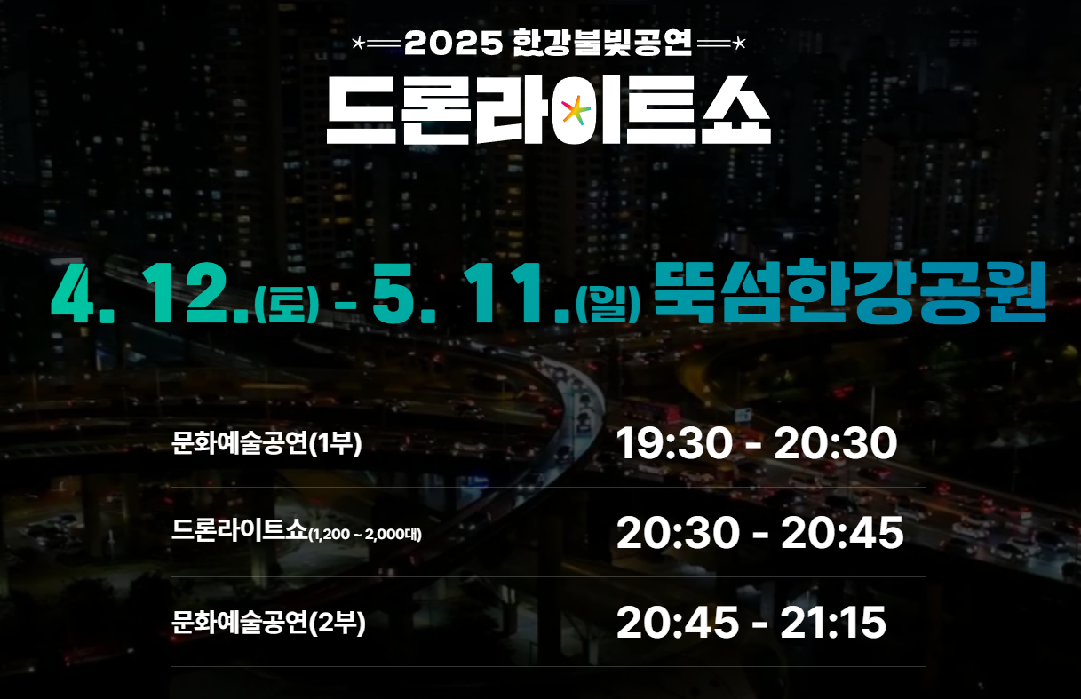 서울의 밤하늘을 장식하는 색다른 퍼포먼스, '한강 불빛 공연(드론 라이트 쇼)'이 2025년 봄, 다시 찾아왔습니다. 한강공원 일대에서 펼쳐지는 이 장관은 단순한 불꽃놀이를 넘어, 수백 대의 드론이 하늘을 무대로 이야기를 펼쳐내는 빛의 예술입니다. 이번 포스팅에서는 2025년 한강 드론 라이트 쇼의 생생한 현장과 꿀팁, 관람 포인트까지 자세히 소개합니다.