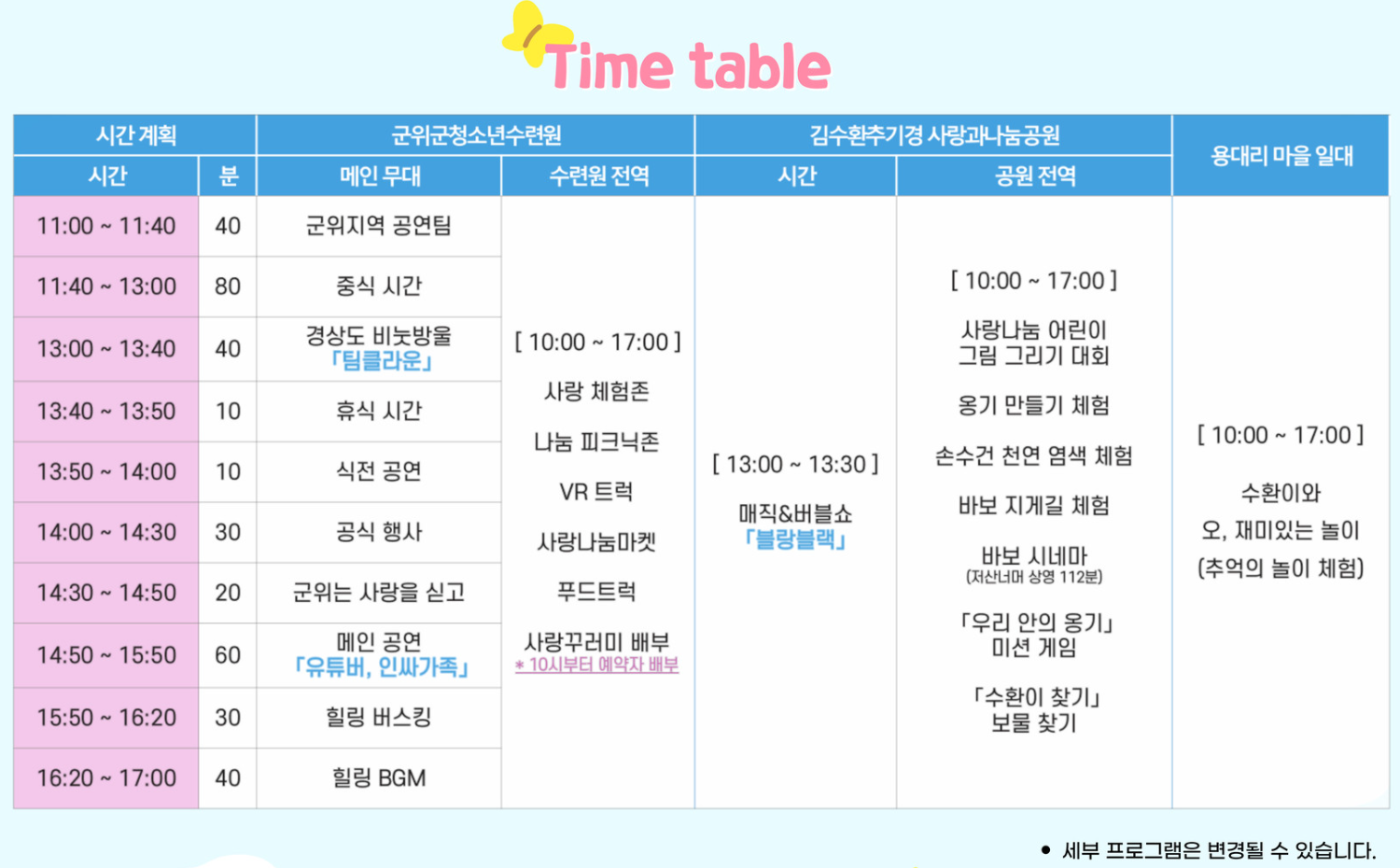 이번 글에서는 군위 사랑과 나눔 문화축전의 주요 체험 프로그램부터 위치, 꿀팁까지 한눈에 정리해드릴게요.