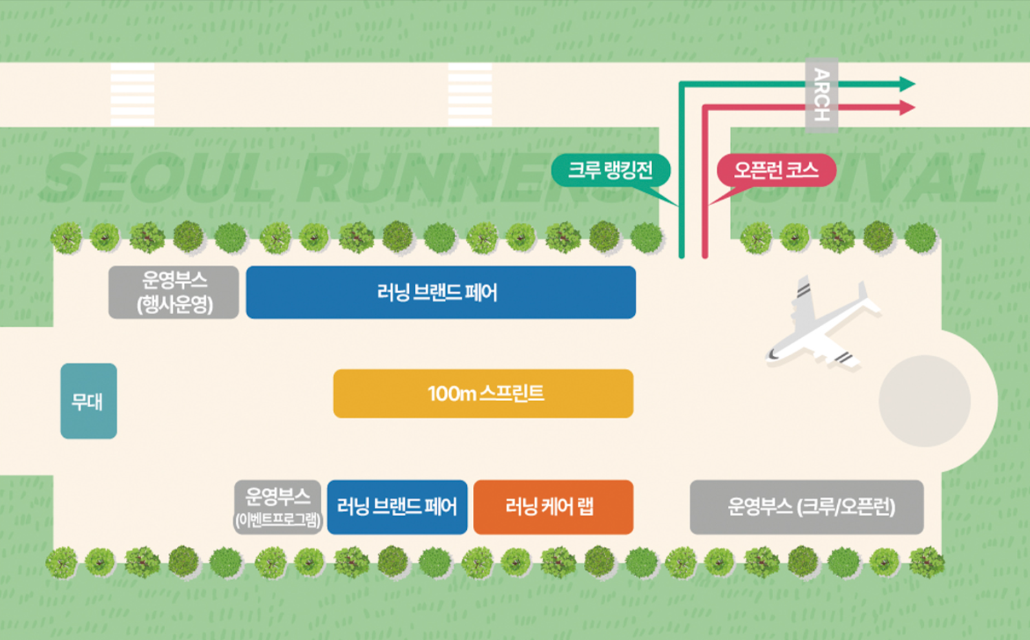 - 러너스 라운지: 휴식 공간과 무료 음료, 간식이 제공되는 텐트존도 운영되어 운동 후 체력 회복에 안성맞춤입니다.
