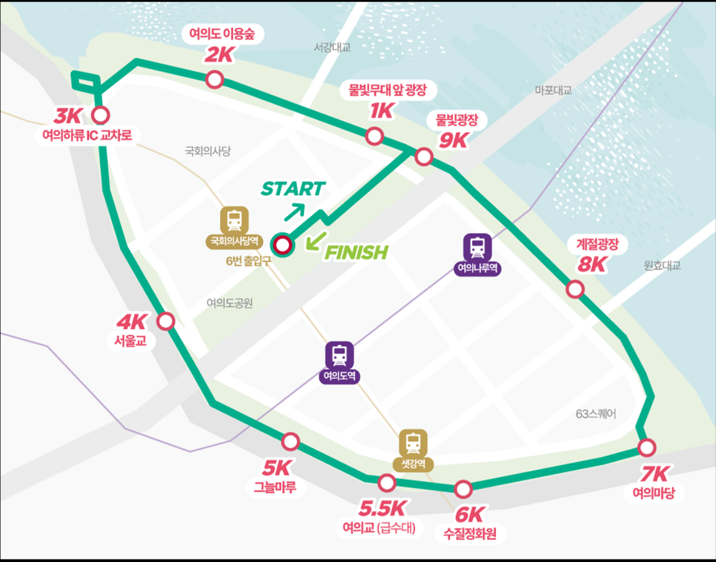- 코스: 여의도공원 – 여의도한강공원 일대 순환코스