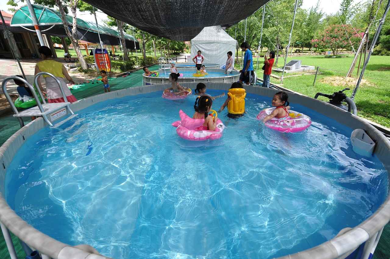 안전요원이 상주하고, 낮은 세면대, 유아 전용 변기, 수유실, 의무실 등 아이 중심의 설계가 돋보인다.