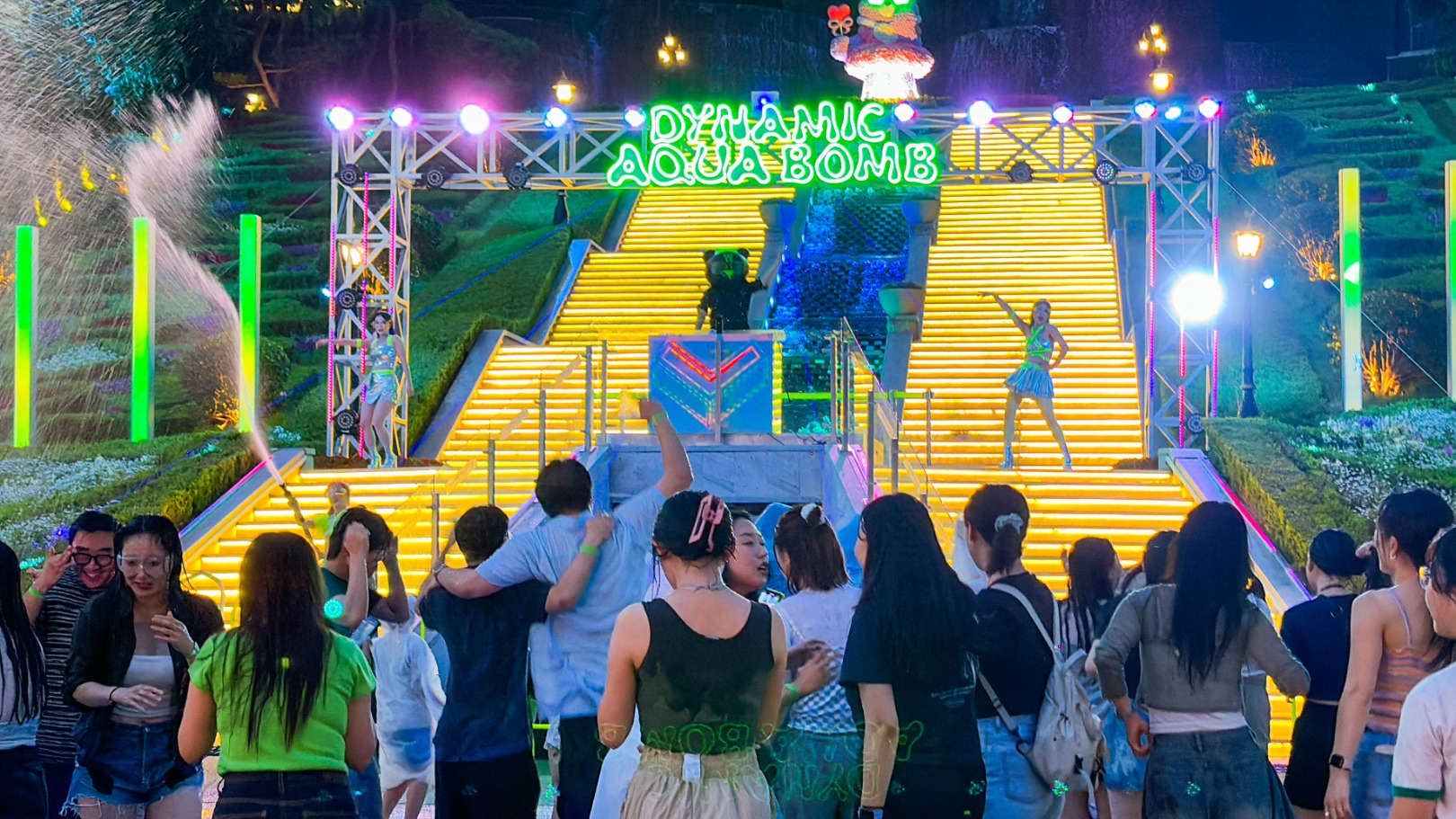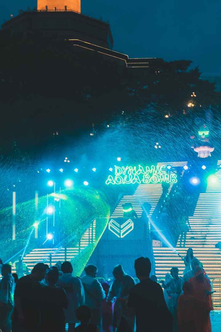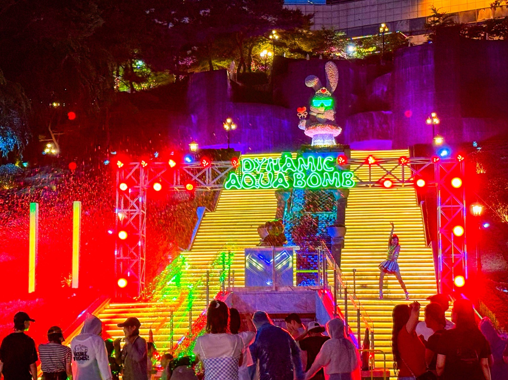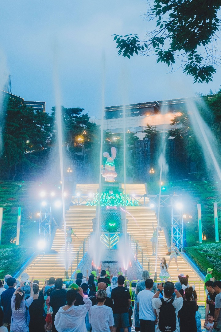 EDM 댄스 음악과 함께 DJ가 무대를 달구고, 그 위로 초대형 워터캐논이 물을 뿜어내는 장면, 진짜 영화 같았어요.