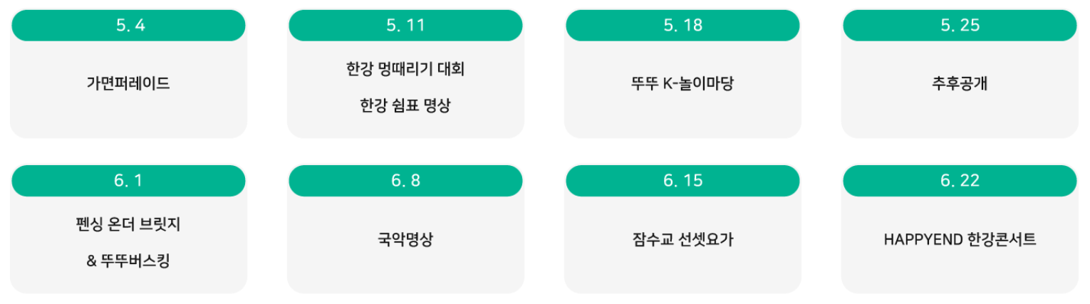 - 힐링존 & 포토존: 여유롭게 쉬며 한강을 배경으로 사진도 남길 수 있는 공간