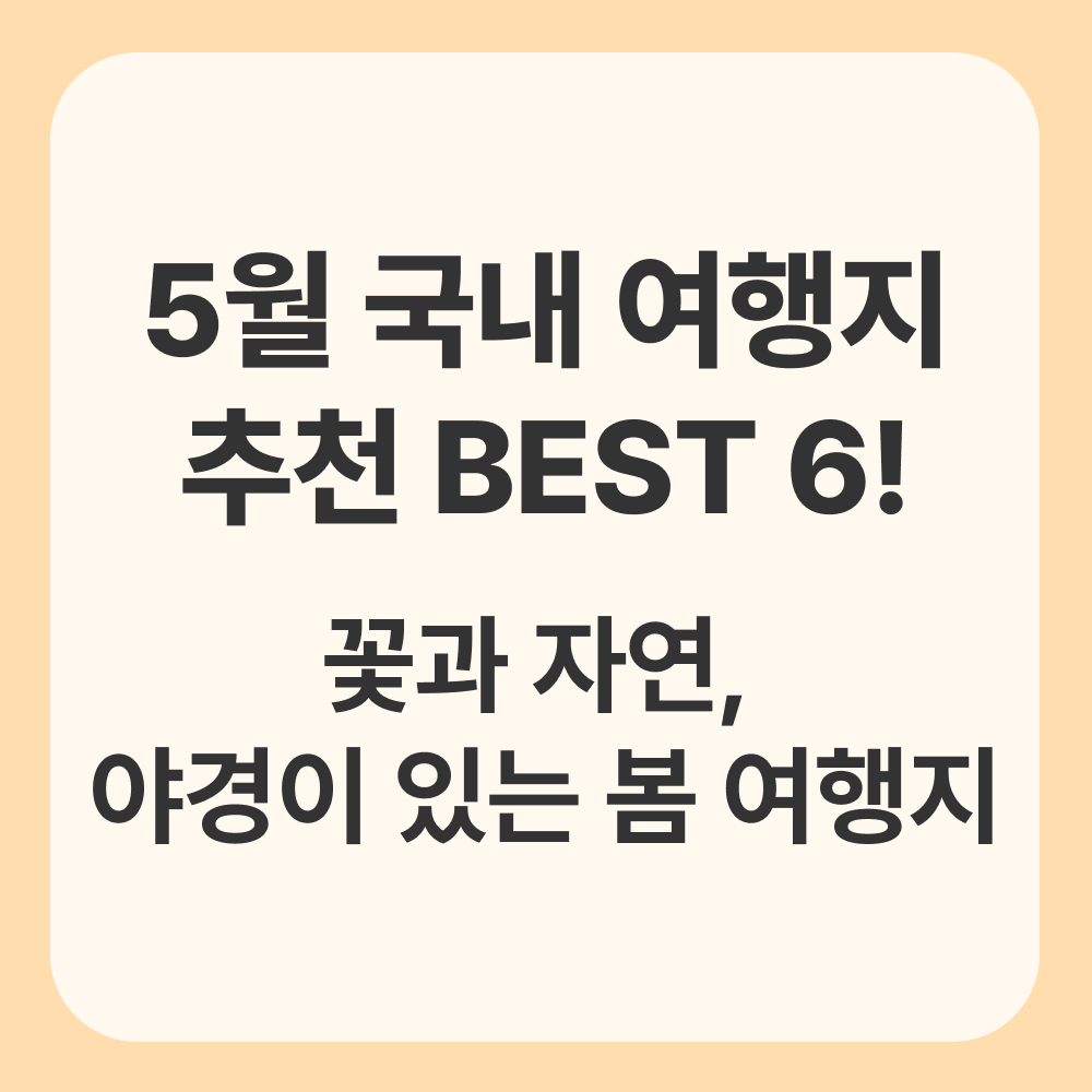 싱그러운 초록과 따스한 햇살, 꽃향기로 가득한 5월은 국내 여행을 즐기기에 가장 완벽한 달입니다. 연휴나 주말을 활용해 짧고 굵게 힐링할 수 있는 국내 봄 여행지 6곳을 소개합니다. 이국적인 꽃축제부터 야경 명소, 자연 속 걷기 좋은 장소까지 다양하게 구성했습니다.